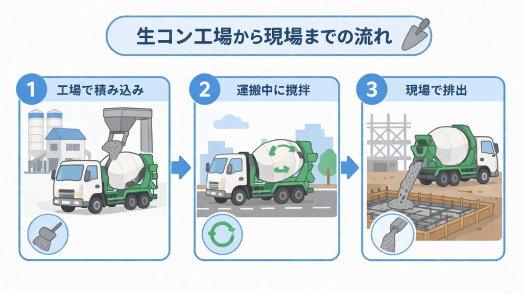 コンクリートは、運ぶだけの荷物とは少し違います。