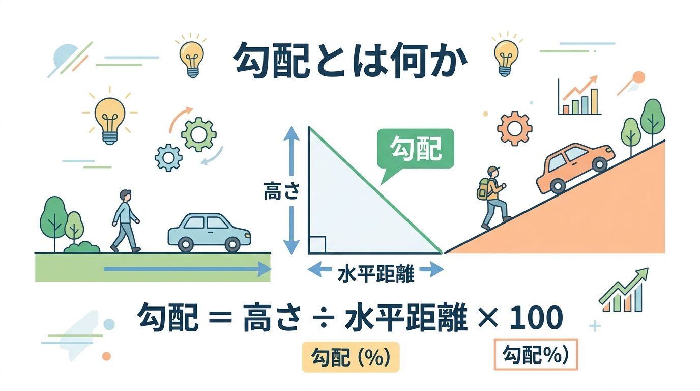 ただ、数字だけを見るとイメージしにくいですよね。そこでこの記事では、勾配のパーセントの意味をやさしく整理しながら、計算のしかた、角度との違い、つまずきやすいポイントまで順番に解説します。