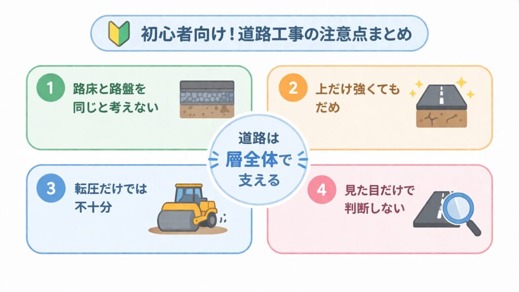 まとめ|路床と路盤を分けて考えると舗装構造が理解しやすい